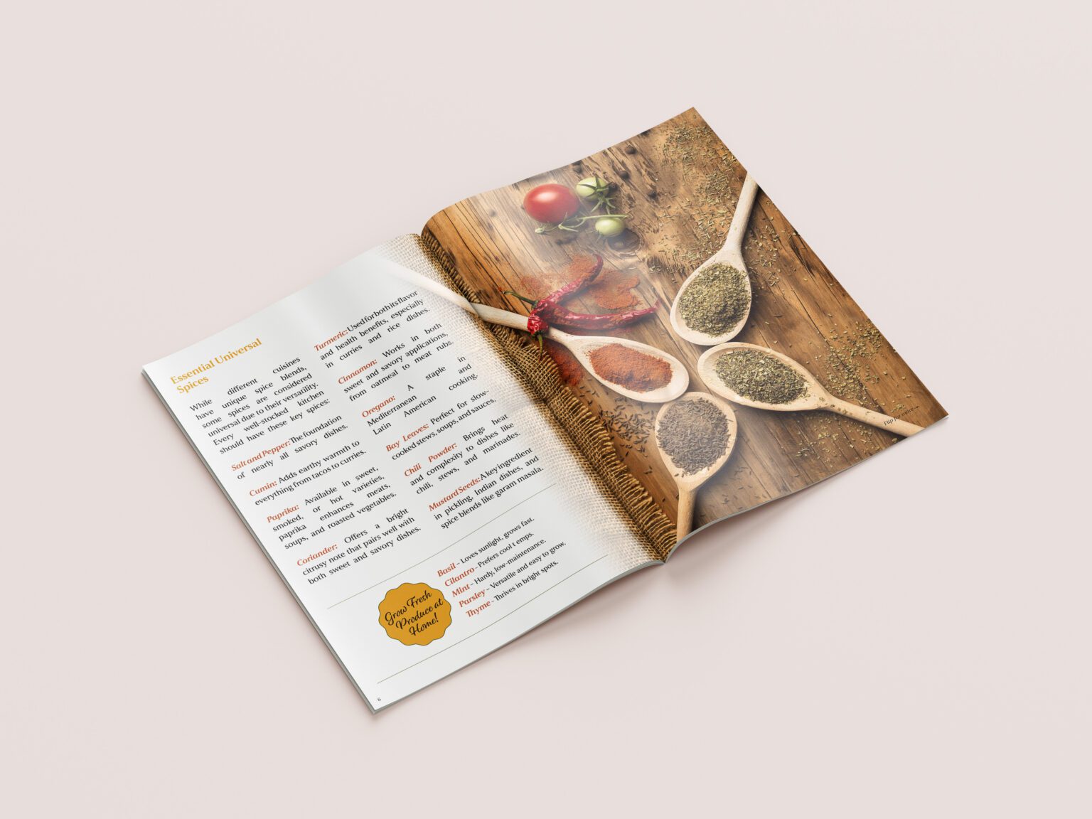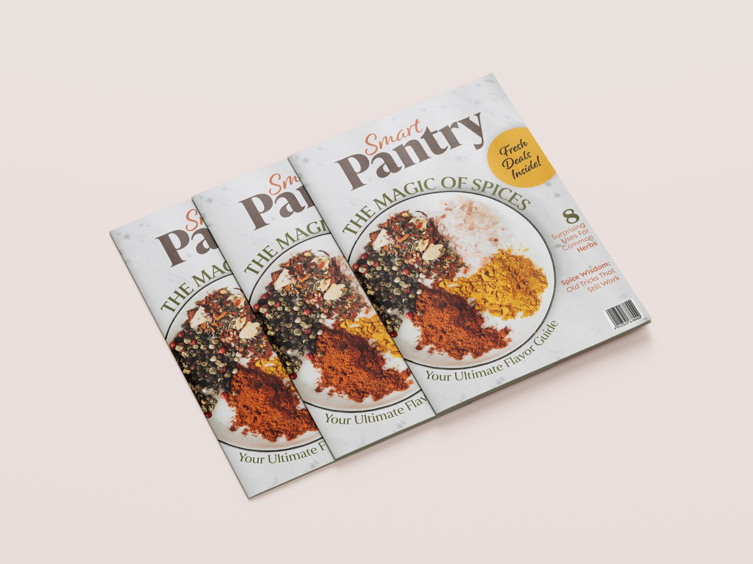 Smart Pantry is a personal project created to strengthen my Adobe InDesign skills and explore magazine design. The concept was aimed at people who appreciate homemade goods such as preserves and juices, while also enjoying useful deals and tips. The main feature article focused on spices, with the goal of inspiring readers through vibrant visuals and practical content.