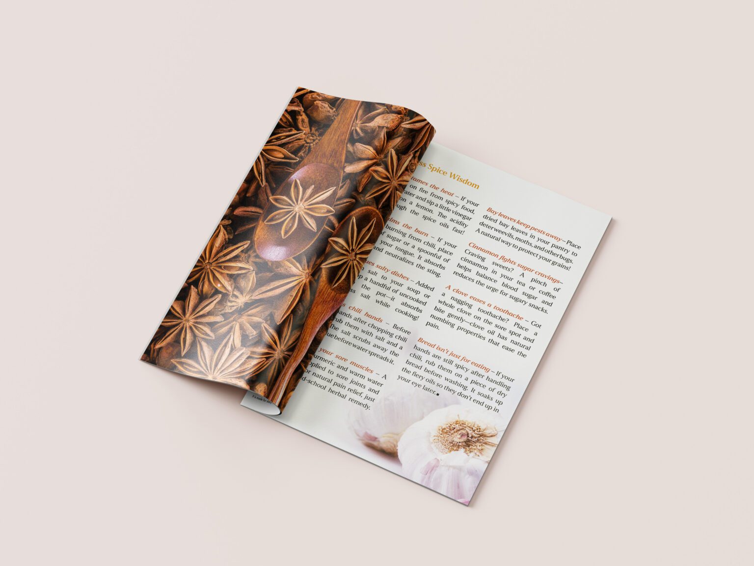 Imagery: Choosing vibrant, high-quality photos that highlight spices and homemade goods but also evoke a sense of comfort and warmth.