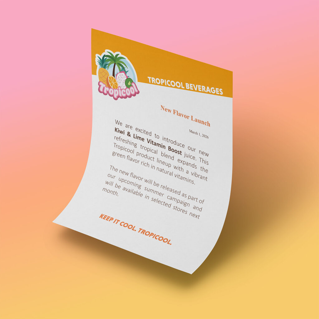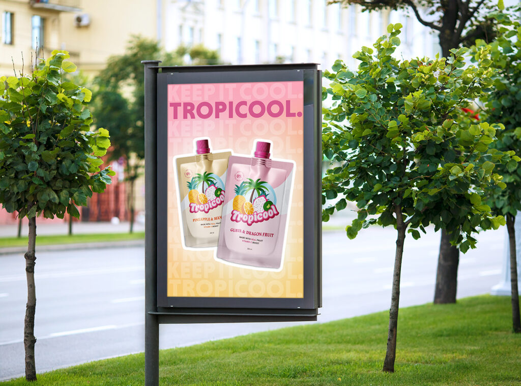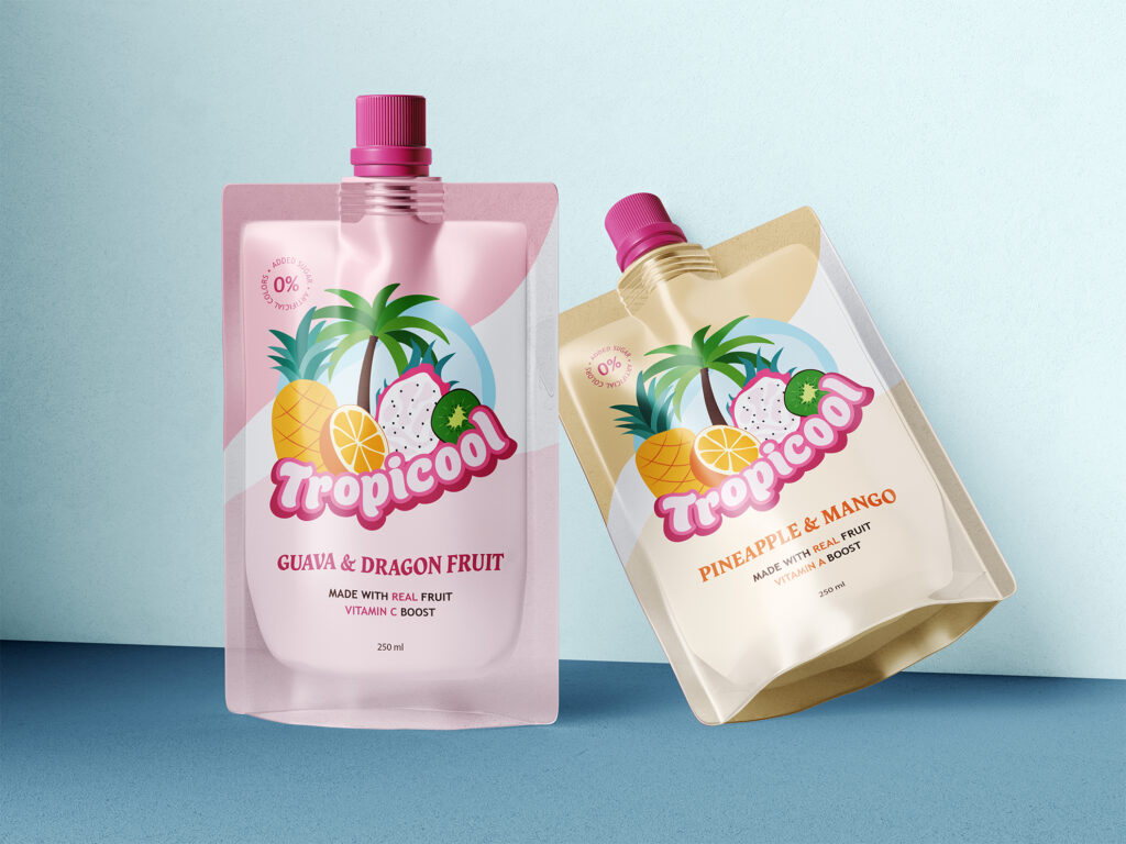 For this project, I designed a logo for Tropicool, a soft drinks company specializing in tropical juice pouches. The client wanted a logo that feels upbeat, attractive, and very colorful, appealing to a target audience of 5–40 year olds. Their brief emphasized that the logo should appear cool, refreshing, fresh, and tropical, with cartoon-like fruits and playful elements that highlight the fun and vibrant nature of the brand.